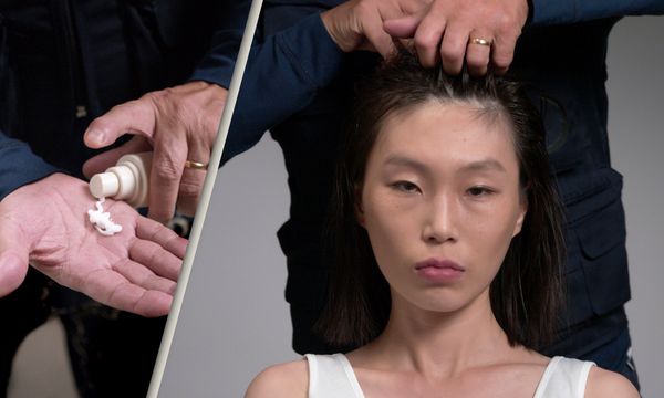 Vừa sấy khô tóc vừa tạo kiểu bằng các ngón tay.